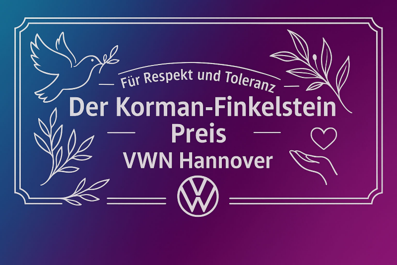 Ihr kommt aus Hannover oder der Region und wollt ein Zeichen gegen das Vergessen setzen? Mit dem Korman-Finkelstein-Preis zeichnen Volkswagen Nutzfahrzeuge und die Jugend- und Auszubildendenvertretung (JAV) gemeinsam junge Menschen ab 16 Jahre aus, die mit ihren Projekten für Respekt und Toleranz einstehen.